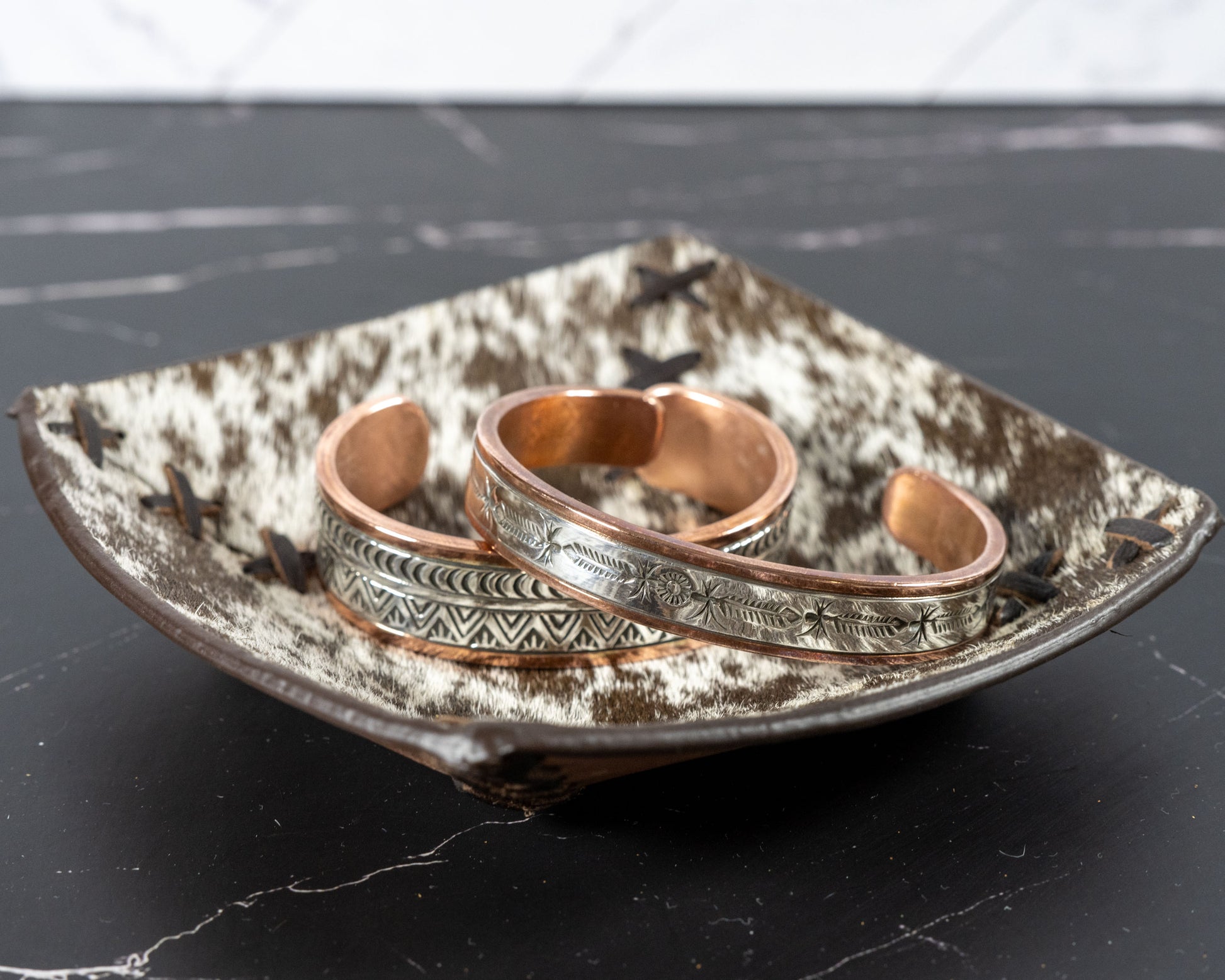 Boho Ranch Shop - COWHIDE LEATHER TRAY - jewelry storage - Genuine Hair On