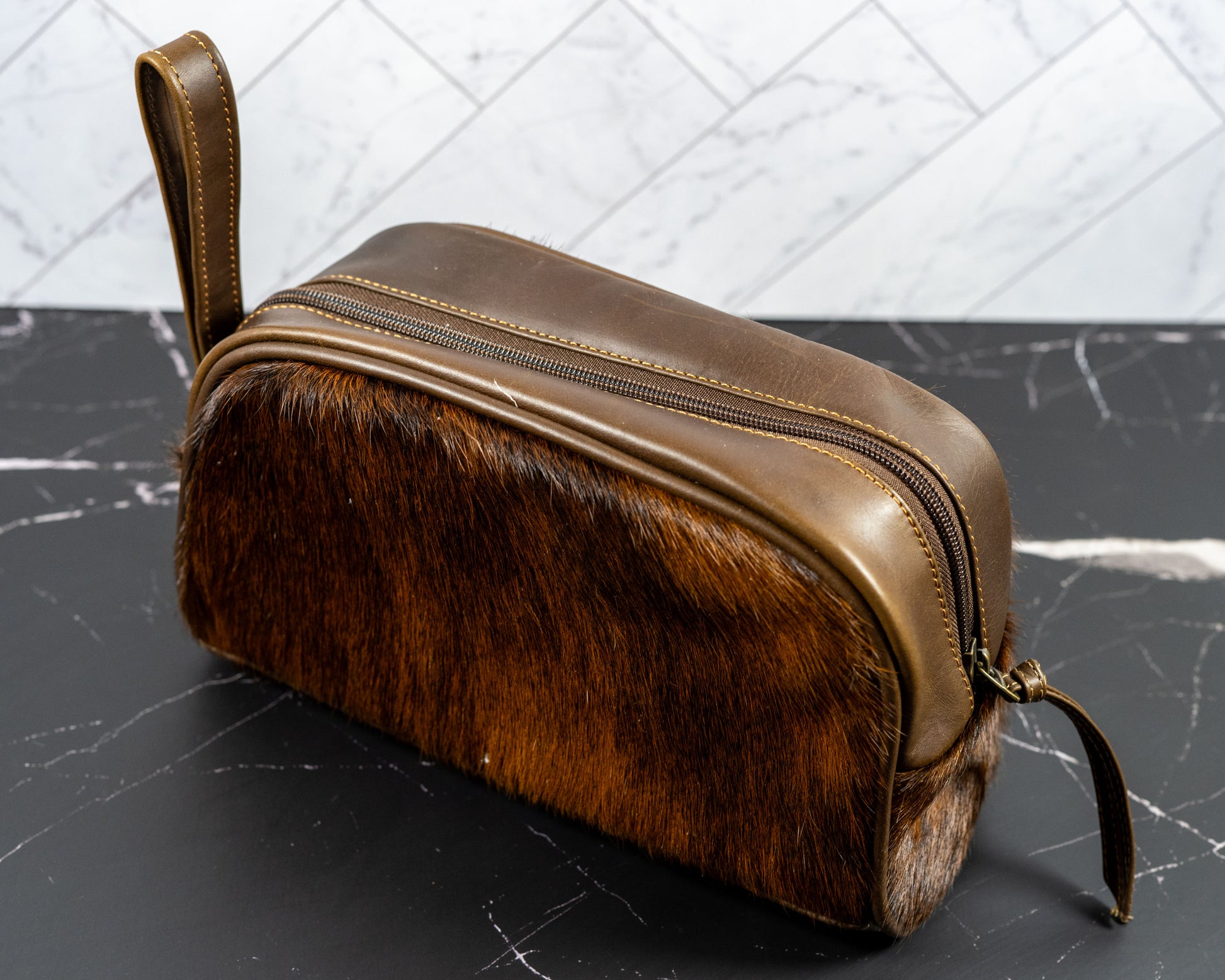 Cowhide Leather Toiletry Dopp Kit Travel Bag