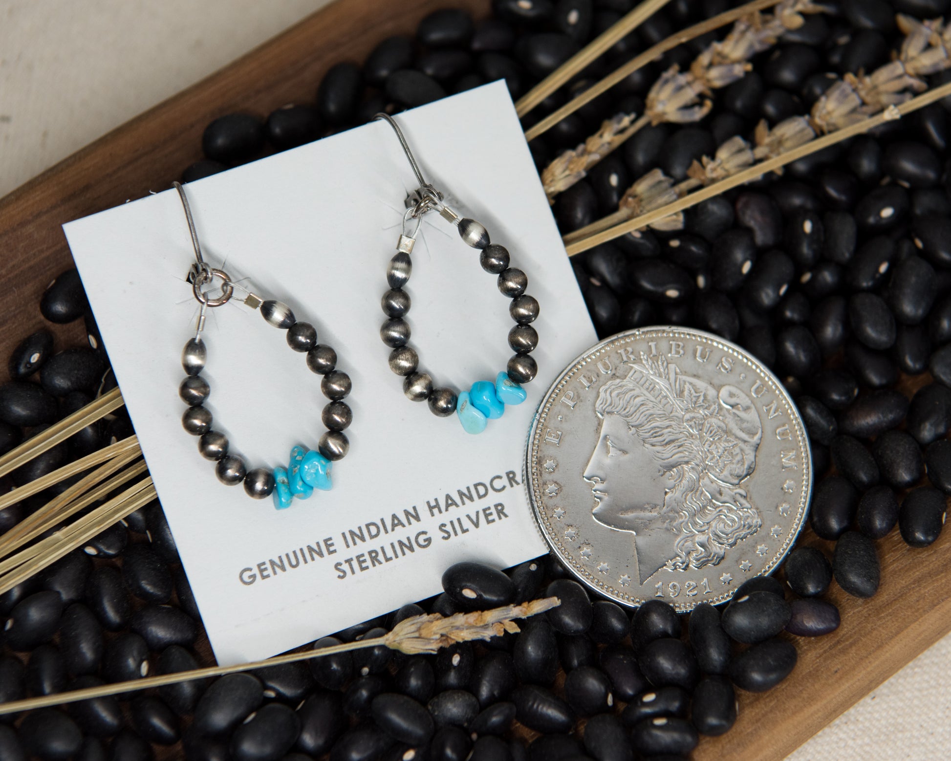 Lever back Navajo Pearl, 3 stone turquoise earrings. Sterling Silver. Native American Made.